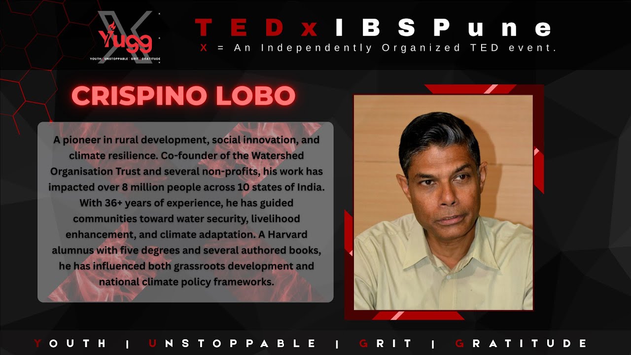 - 16:13From Drought to Hope: Transforming Lives Through Water | Crispino Lobo | TEDxIBS PuneNOTE FROM TED: TEDx events are independently organized by volunteers. The guidelines we give TEDx organizers are described in more detail here: http://storage.ted.com/tedx/manuals/tedx_content_guidelines.pdfIn this powerful talk, Crispino Lobo shares his journey from witnessing the devastating droughts of Maharashtra in the 1970s to co-founding the Watershed Organization Trust (WOTR), which has transformed over 7,000 villages across India. He recounts how capturing rainwater and regenerating landscapes can break the cycle of poverty, empower women, and create climate-resilient agriculture. With stories of communities rising from despair to prosperity, he explains why water is not just a resource but the foundation of life, livelihood, and dignity and how collective action can secure our future against the growing challenges of climate change. Crispino Lobo has over 36 years of experience mobilising rural communities and working with governments, corporates, and civil society to reduce poverty and enhance climate resilience. He co-founded the Watershed Organisation Trust (WOTR) and other non-profits, impacting 8.4 million people across India, regenerating landscapes, promoting climate-responsive agriculture, and improving livelihoods. He has led large-scale programs like the Indo-German Watershed Development Program, contributed to national adaptation funds, and advised government policy. An alumnus of Harvard University and the Gokhale Institute of Politics and Economics, Crispino holds five academic degrees and has authored 12 books. This talk was given at a TEDx event using the TED conference format but independently organized by a local community. Learn more at https://www.ted.com/tedx